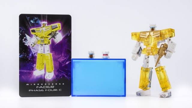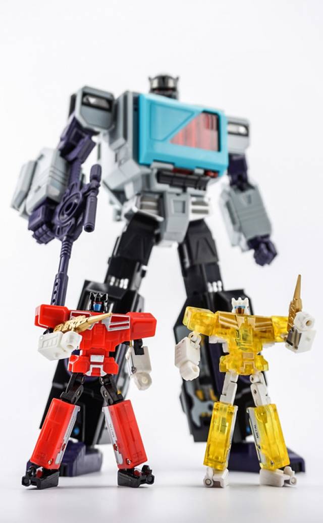 Shattered Transistor Set by KFC Toys is a Masterpiece Scale scaled 3rd party figure that transforms from a Cassette Player to robot and back. Shattered Transistor Set figure stands 9.3 inches tall in robot mode and scales to other figures from KFC Toys and to other Masterpiece Scale scaled figures already in your collection.